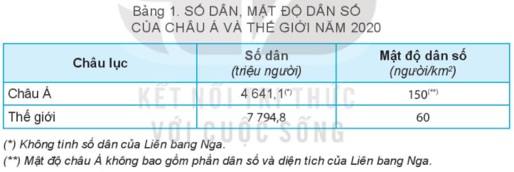 Dựa vào thông tin và bảng 1 trong mục a, hãy trình bày đặc điểm dân cư châu Á.