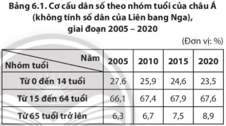 – Nhận xét cơ cấu dân số theo nhóm tuổi của châu Á giai đoạn 2005 – 2020.
