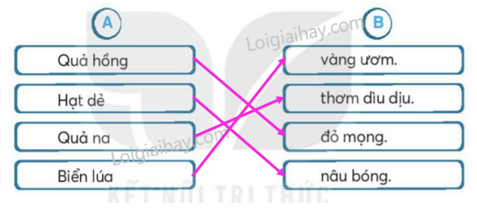 Em đọc kĩ các từ ngữ ở cột A và cột B và nối đặc điểm tương ứng của từng loại quả.
