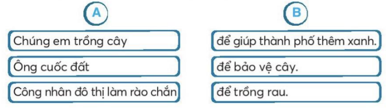 Em đọc kĩ các từ ngữ ở 2 cột để nối tạo thành câu phù hợp.