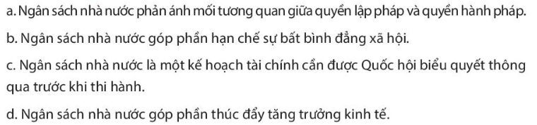 Nội dung b, d không phải đặc điểm của ngân sách nhà nước vì đây là hai trong những vai trò của ngân sách nhà nước