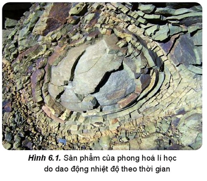 Đọc thông tin và quan sát hình 6.1, 6.2, hãy trình bày tác động của quá trình phong hóa đến sự hình thành địa hình bề mặt Trái Đất.