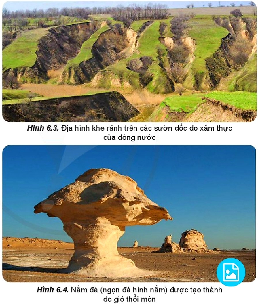 Đọc thông tin mục “Quá trình bóc mòn” và quan sát hình 6.3, 6.6.