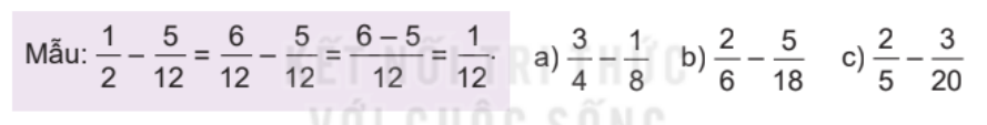 – Muốn trừ hai phân số cùng mẫu số, ta lấy tử số của phân số thứ nhất trừ đi tử số của phân số thứ hai và giữ nguyên mẫu số.