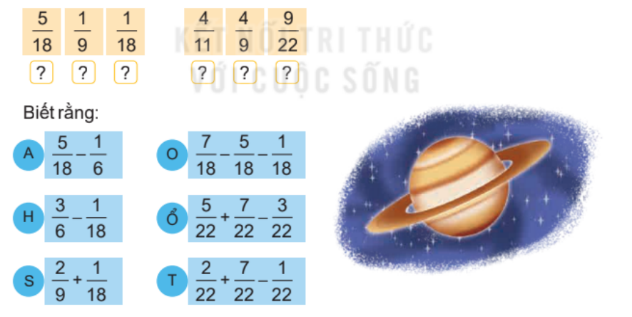 Ổ: $\frac{5}{{22}} + \frac{7}{{22}} – \frac{3}{{22}} = \frac{9}{{22}}$