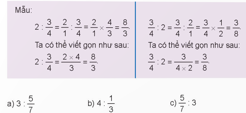 b) Muốn thực hiện phép chia hai phân số, ta lấy phân số thứ nhất nhân với phân số đảo ngược của phân số thứ hai
