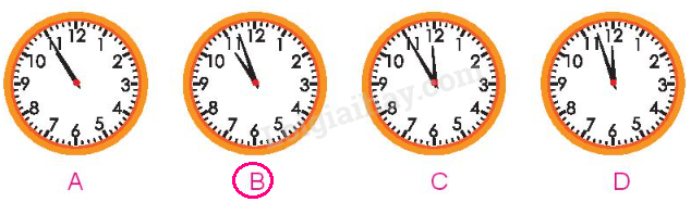 b)  Mẹ làm món rau trộn mất 7 phút. Mẹ bắt đầu làm vào lúc 10 giờ 50 phút. Hỏi đồng hồ nào dưới đây chỉ lúc mẹ làm xong món rau trộn?