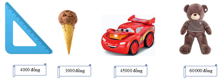 Vì \(3\,000<4\,000<45\,000<60\,000\) nên vật có giá tiền nhiều nhất là gấu bông.
