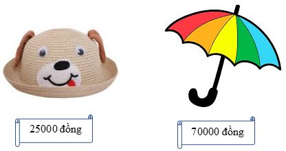 Bạn Tú có 50 000 đồng. Tú muốn mua một số đồ vật trong số các đồ vật sau. Hỏi Tú có thể mua được đồ vật nào dưới đây?