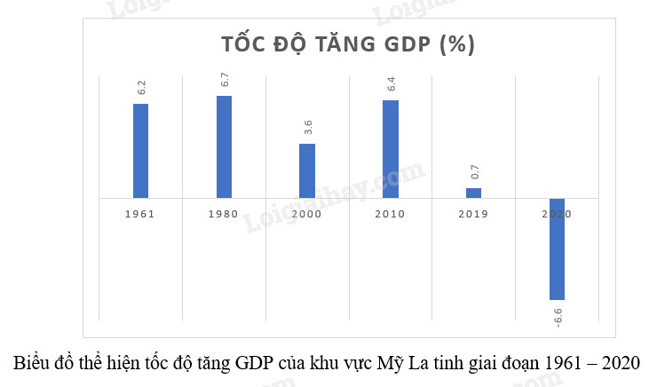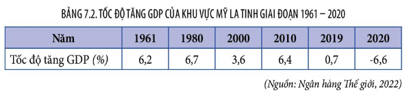 Dựa vào bằng 7.2, vẽ biểu đồ thể hiện tốc độ tăng GDP của khu vực Mỹ La-tinh giai đoạn 1961 – 2020. Nêu nhận xét.
