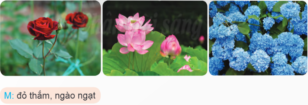 Tìm 1 – 2 từ ngữ chỉ hình dáng, màu sắc, hương thơm của mỗi loại hoa trong hình.