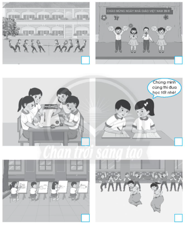 Đánh dấu tích vào □ ở hình chỉ các hoạt động mà trường em đã tổ chức để chào mừng ngày Nhà giáo Việt Nam 20-11