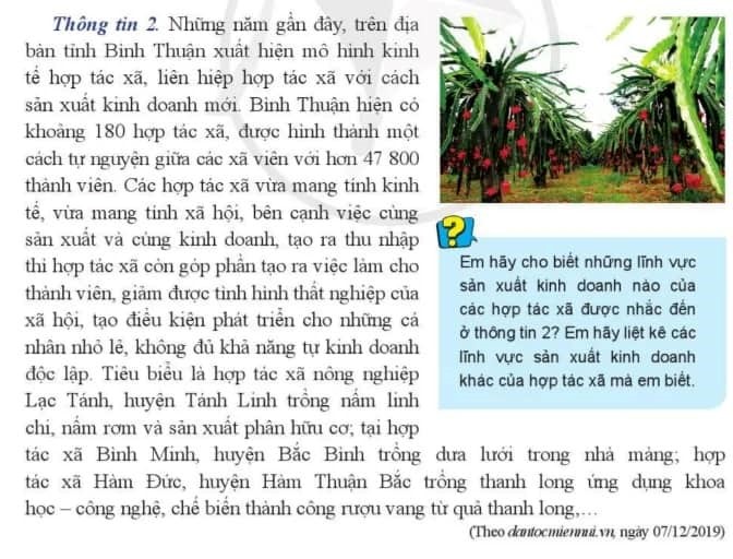– Những lĩnh vực sản xuất kinh doanh của các hợp tác xã được nhắc đến ở thông tin 2: