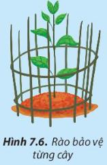 Quan sát vào hình 7.6 ta thấy hình ảnh cây con được rào bảo vệ vòng tròn xung quanh.