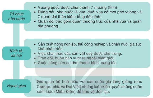 B2: Các từ khóa cần chú ý: Phát triển thịnh vượng, thế kỉ XV – XVII, nhà nước, 7 mường, sản xuất nông nghiệp, trao đổi buôn bán, thanh bình sung túc, ngoại giao, quan hệ hòa hiếu, độc lập.