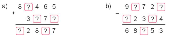 Dựa vào quy tắc đặt tính rồi tính, em xác ra chữ số thích hợp với dấu “?” ở mỗi ô.