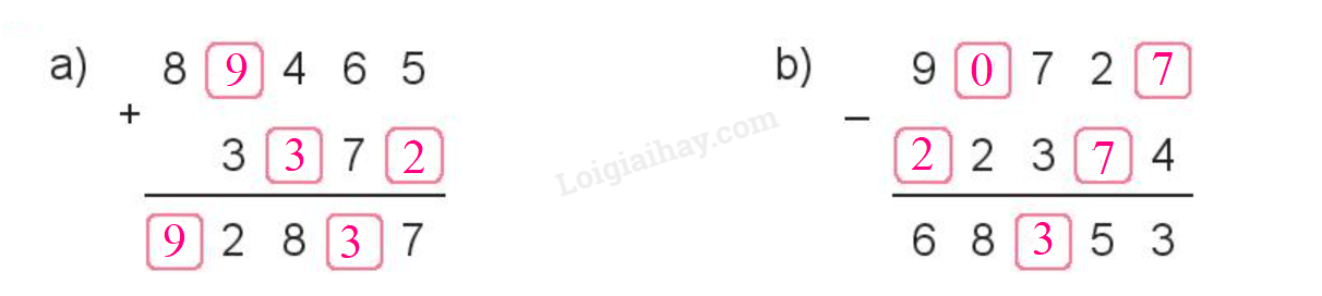a) Để tìm tổng của hai số ta thực hiện phép cộng: 6 735 + 3 627.
