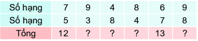 Ta có:  9 + 3 = 12 ; 8 + 9 = 17.