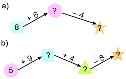 b) 5 + 9 = 14;  14 + 4 =18;  18 – 8 = 10.