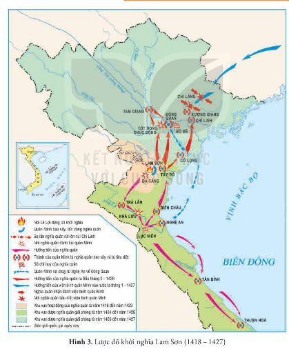1. Khai thác lược đồ Hình 3 và sơ đồ Hình 4, trình bày diễn biến chính của cuộc khởi nghĩa Lam Sơn