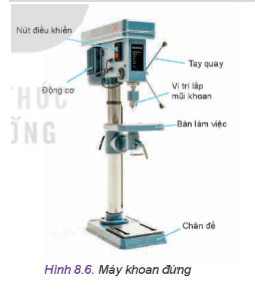 Quan sát Hình 8.6 và cho biết bộ phận nào dùng để điều chỉnh chiều sâu khi khoan?