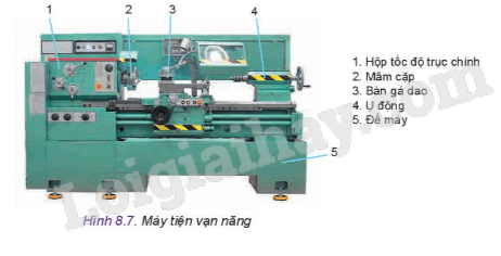 Quan sát Hình 8.7 và cho biết bộ phận chính nào dùng để gá phôi trên máy tiện vạn năng?