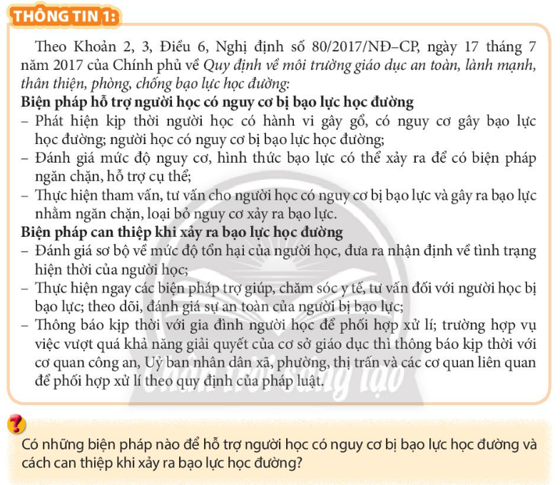 – Nêu biện pháp để hỗ trợ người học có nguy cơ bị bạo lực học đường.