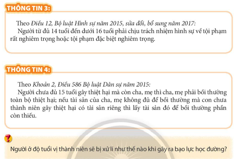 – Người ở độ tuổi vị thành niên sẽ bị xử lí khi gây ra bạo lực học đường như sau: