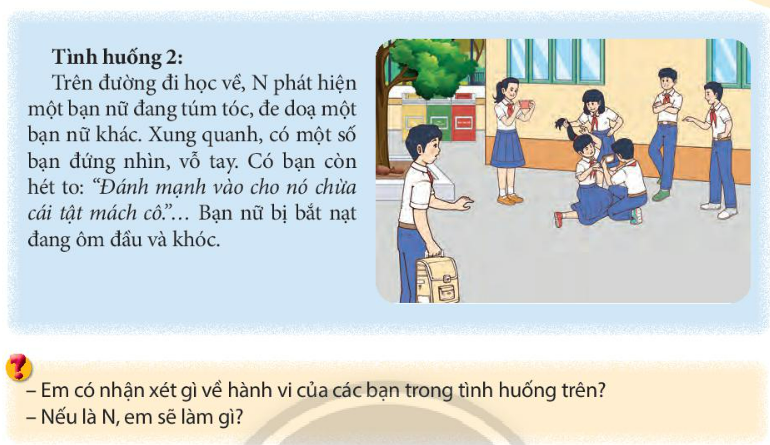 – Đọc tình huống 2 và đưa ra nhận xét về hành vi của các bạn. Hành động của em khi là N.
