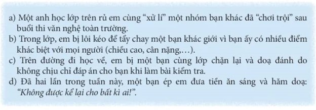 – Những biểu hiện nào của bạo lực học đường được đề cập trong câu chuyện trên?