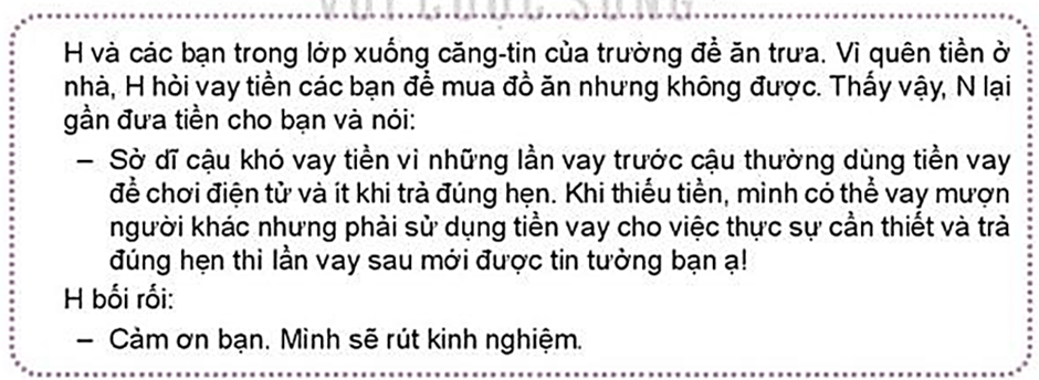 – Đọc trường hợp và giải thích vì sao H khó vay tiền của các bạn trong lớp.
