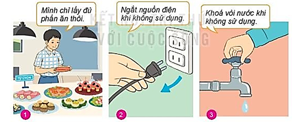 – Nêu cách tiết kiệm thức ăn, điện, nước,… mà em biết