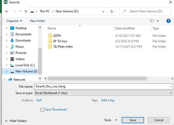 – Bấm tổ hợp phím Ctrl + S, xuất hiện hộp thoại, chọn đường dẫn lưu file và đặt tên file như sau: