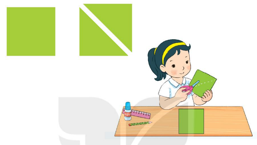 Bạn Việt cắt miếng bìa hình vuông thành bốn miếng bìa hình tam giác: