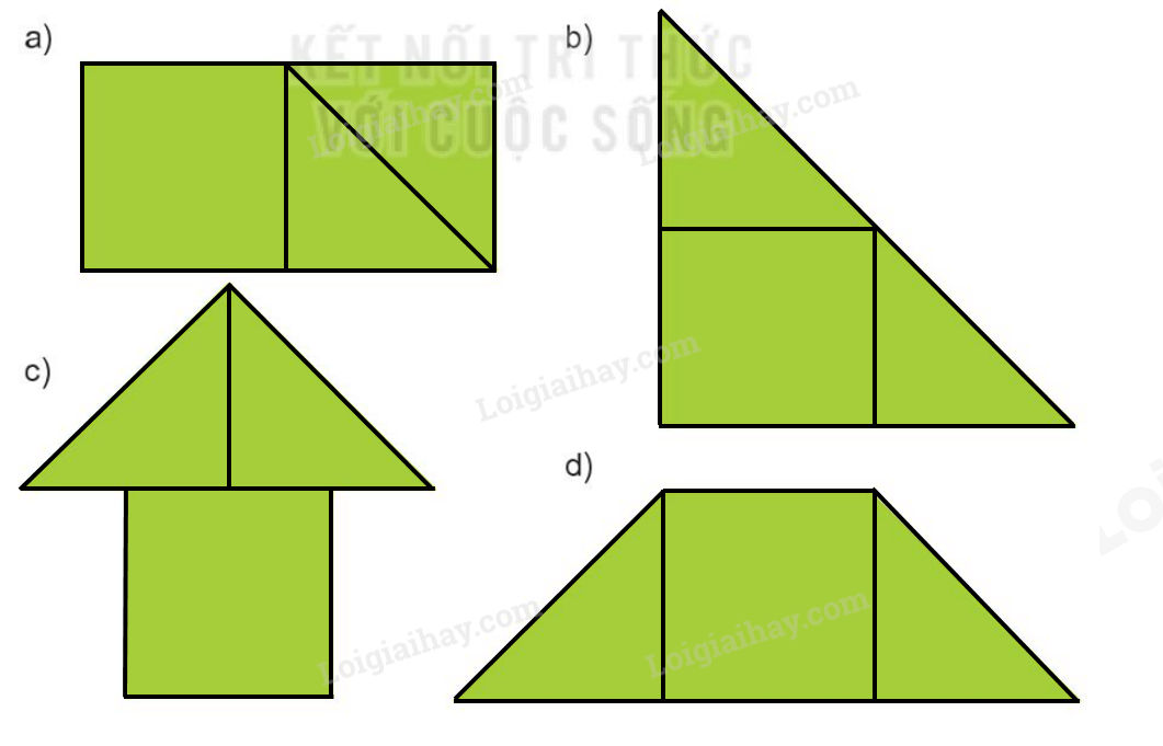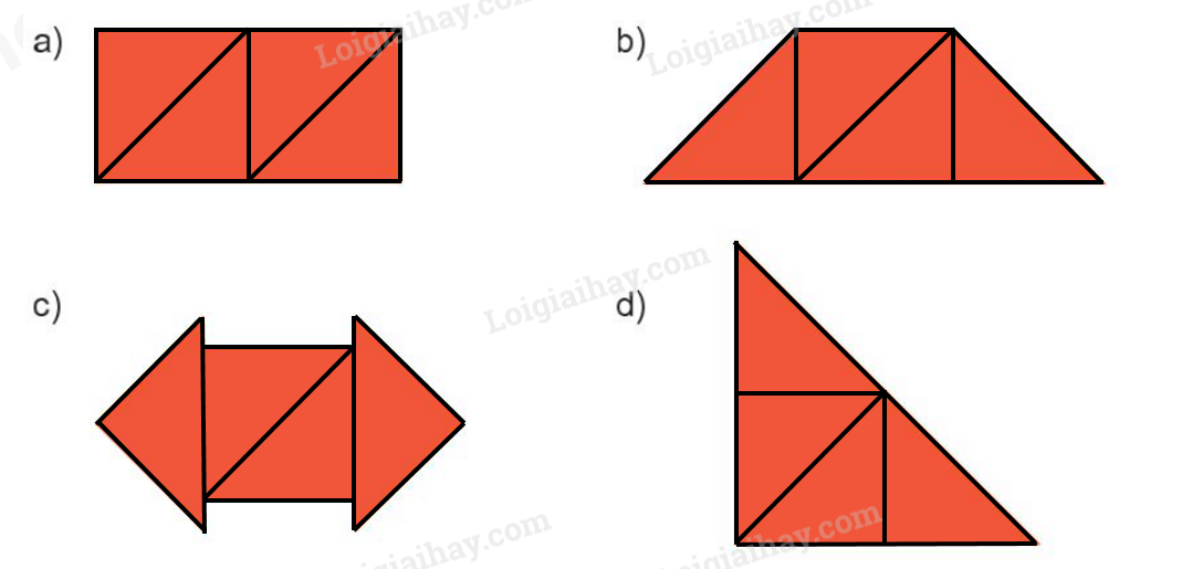 Em hãy ghép bốn miếng bìa hình tam giác đó để được mỗi hình sau: