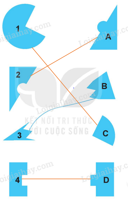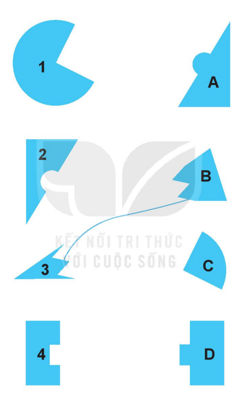 Tìm hai miếng bìa để ghép được hình tròn, hình vuông, hình tam giác hoặc hình chữ nhật.
