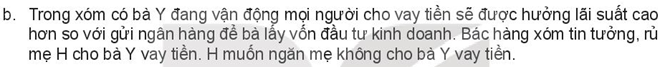 b. Nếu là H, em sẽ thuyết phục mẹ là: Mẹ không nên làm như vậy vì không đảm bảo được rằng bà Y có kinh doanh thành công và đủ tiền chi trả lại suất hay không.
