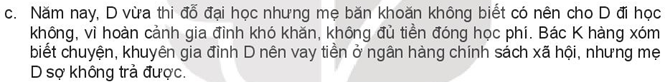 c. Nếu là D, em sẽ khuyên mẹ nên đến ngân vay tiền vì vừa an toàn, lãi suất lại thấp, đáng tin cậy.