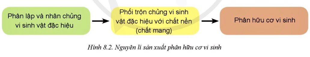Nguyên lí sản xuất phân hữu cơ vi sinh được thể hiện trong Hình 8.2: