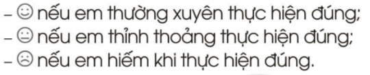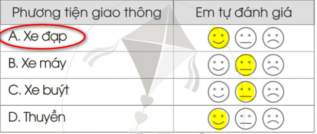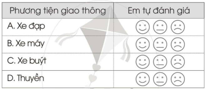 b. Tự đánh giá bản thân về việc thực hiện khi đi trên các phương tiện giao thông đó bằng cách tô màu vào: