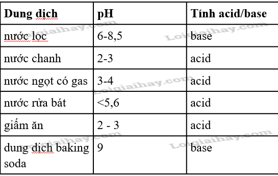 1. Đọc giá trị pH của từng dịch dịch và cho biết dịch dịch nào có tính axit, dịch dịch nào có tính bazơ.
