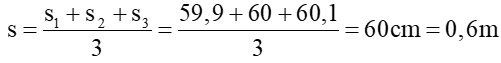 Tính giá trị trung bình của s: \(s = \frac{{{s_1} + {s_2} + {s_3}}}{3}\) và của t: \(t = \frac{{{t_1} + {t_2} + {t_3}}}{3}\) từ đó xác định tốc độ: \(v = \frac{s}{t}\).