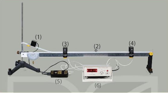 Đồng hồ đo thời gian hiện số được chọn ở chế độ A \( \leftrightarrow \) B để đo khoảng thời gian vật chuyển động từ cổng quang điện (3) đến cổng quang điện (4).