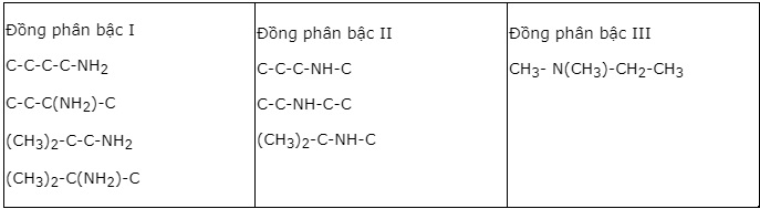 Bậc của amin là bậc của nguyên tử cacbon liên kết với nhóm amin.