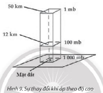 Dựa vào hình 9, em hãy mô tả sự thay đổi khí áp theo độ cao. Giải thích tại sao.