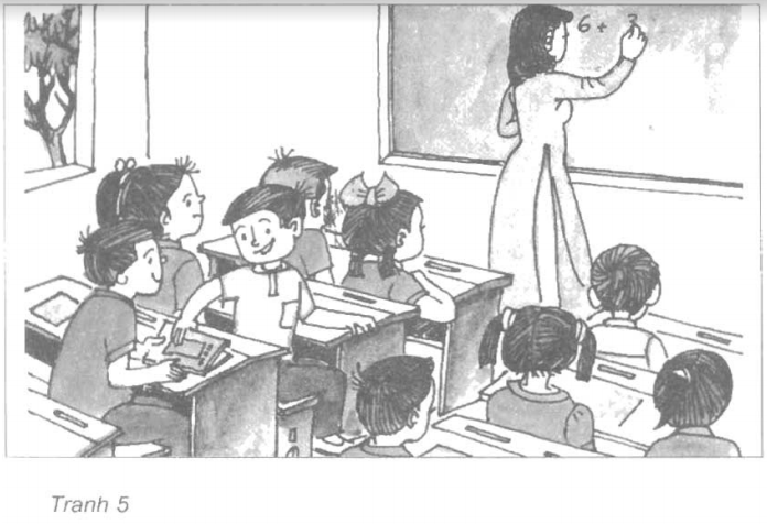 – Tranh 5: Trong khi cả lớp đang chăm chú nghe giảng thì hai bạn nam đầu bàn lại đùa nghịch.