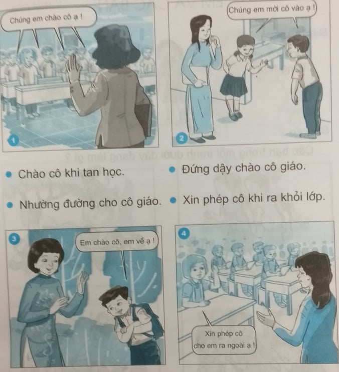– Khi gặp thầy giáo, cô giáo cần phải chào hỏi lễ phép.