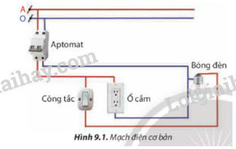 Em hãy xác định bộ phần điều khiển bóng đèn sáng và tắt trên mạch điện ở Hình 9.1.