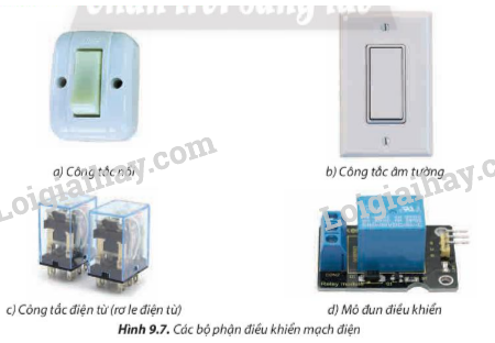 Nêu tên các bộ phận và phạm vi ứng dụng của các loại công tắc trong hình 9.7