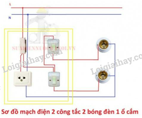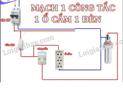 Nêu một số mạch điện đơn giản như 1 công tắc, 1 ổ cắm, 1 đèn.